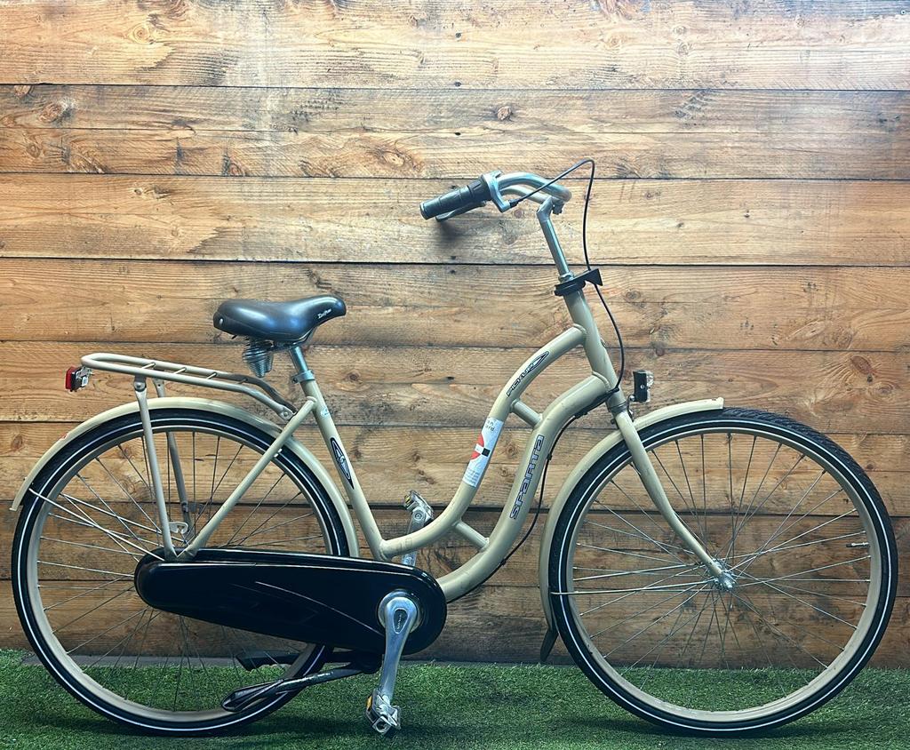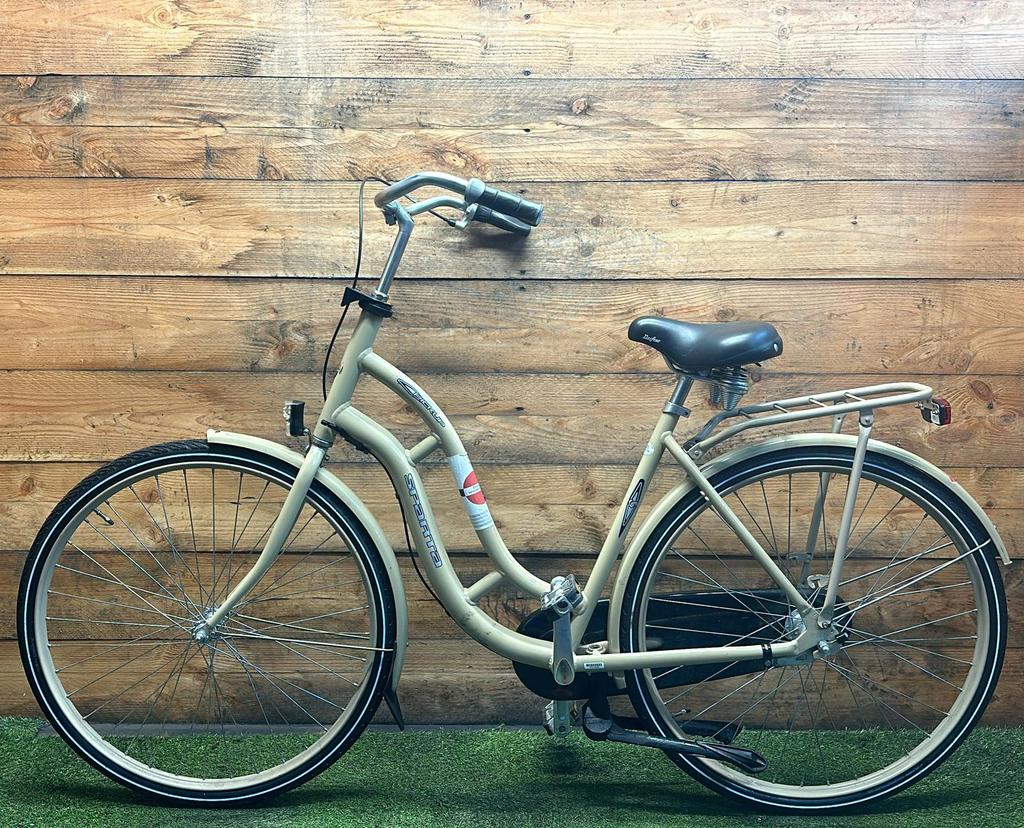 Hoewel de fiets gebruikssporen heeft, is deze technisch volledig gereviseerd en zijn versleten onderdelen vervangen door nieuwe